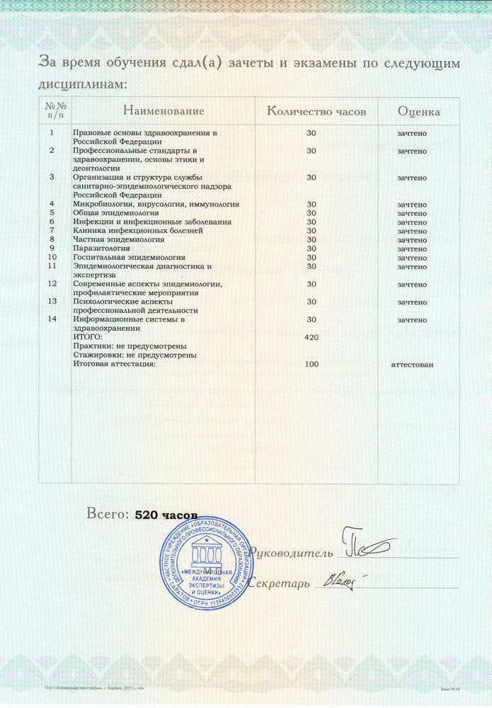 ЧУ «ООДПО «Международная Академия Экспертизы и Оценки» осуществляет переподготовку эпидемиологов.